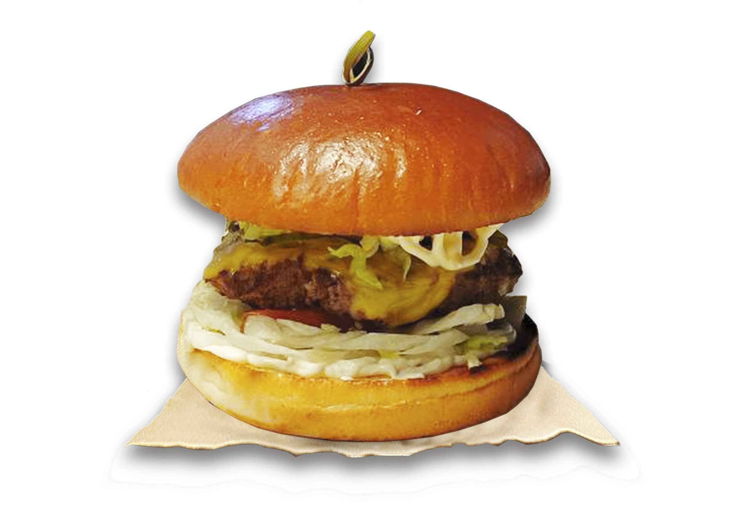 Булочка, говяжья котлета, салат Айсберг, сырная котлета в панировке, помидор, майонез, соус ВВQ, сыр Чеддер, сыр Маццарела, лук фри