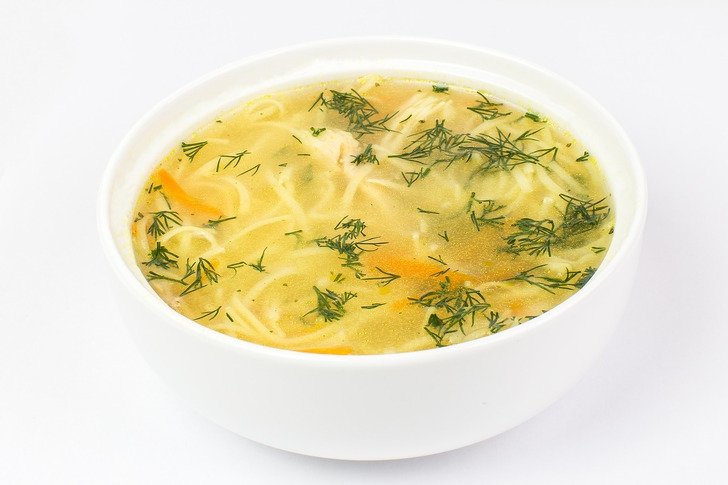 куриный бульон, лапша, курица