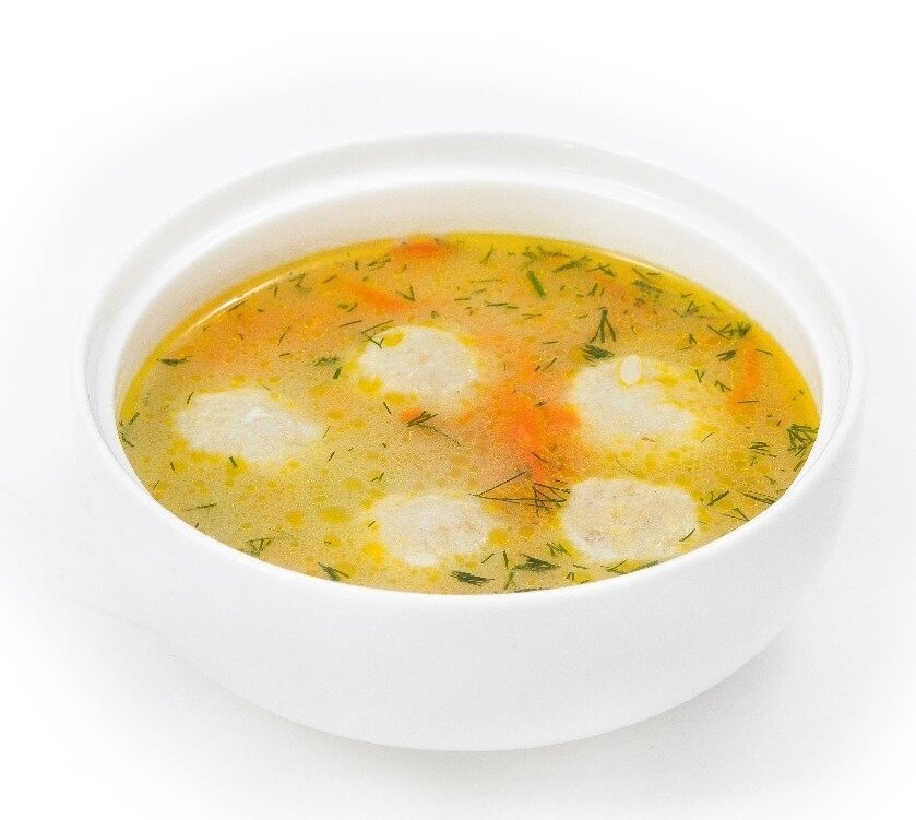 Суп с фрикадельками из ковяжьего фарша, сметана
